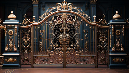 Ornate metal fence, old fashioned elegance, Christian gold decoration, ancient architecture generated by artificial intelligence