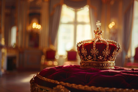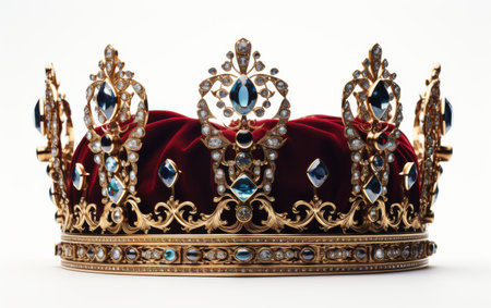 A detailed image of a magnificent crown, adorned with precious stones and intricate gold detailing. Rich in history and symbolism.