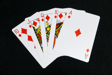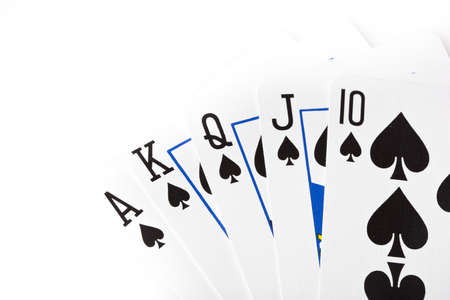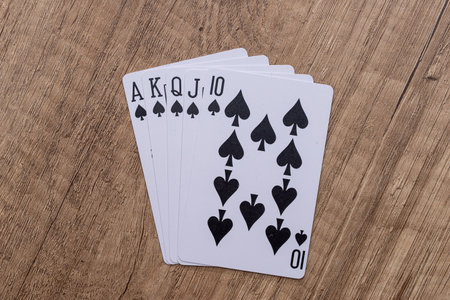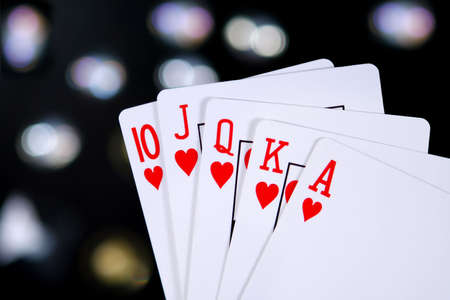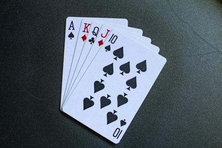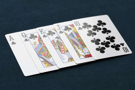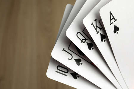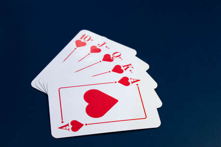 Royal flush cards. Card game, cards on the table. Poker and blackjack, play cards.