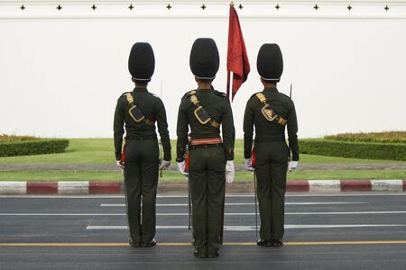 BANGKOK, THAILAND - JANUARY 03, 2019: Thai military personnel guarding the royal residence