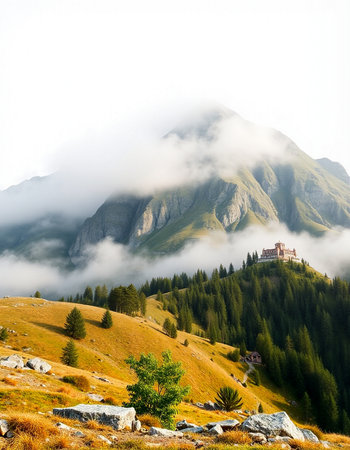 Beautiful mountain landscape with fog
