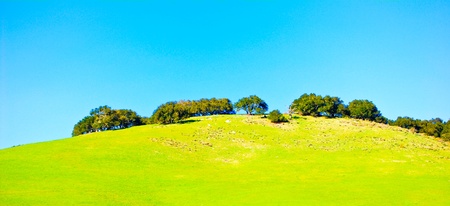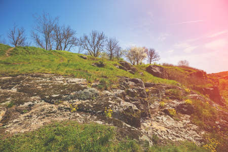 Hill with some trees, the photo has a vintage effect