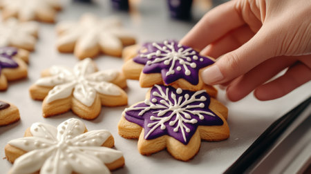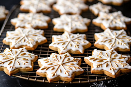 winter-themed royal icing cookies cooling on a wire rack, created with generative ai