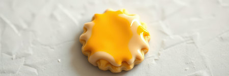 Delicious yellow cookie decorated with icing ready for serving at a baking event in a cozy kitchen