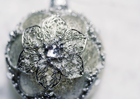Gold flashing snowflake with diamond close-up as Christmas tree decor