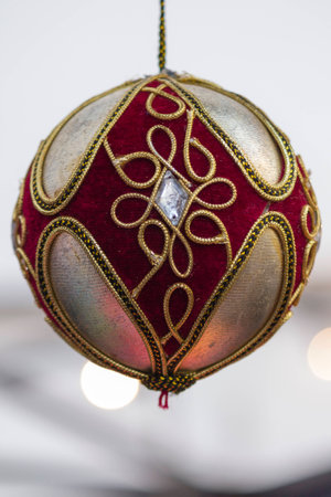 Beautiful Christmas decorations hanging on a Christmas tree. Home decoration for Christmas.
