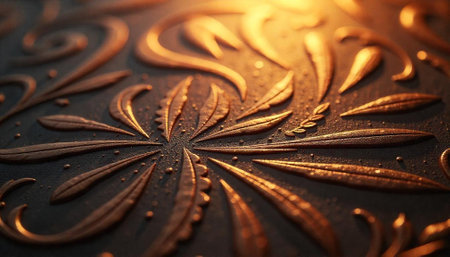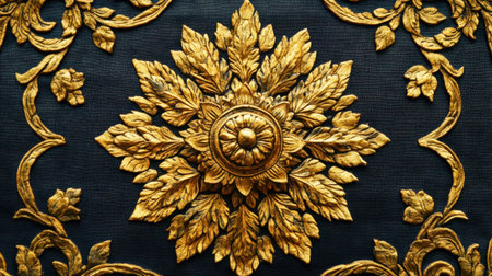 This stunning image showcases an ornate golden floral design featuring intricate leaf patterns on a dark textured background, exuding elegance and artistry.