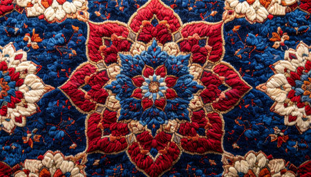 A close-up view reveals the intricate craftsmanship of a traditional oriental carpet.