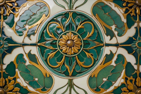 Golden floral pattern on dark background radiating from center