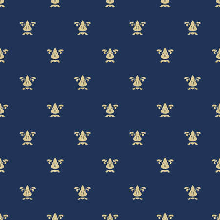 Seamless pattern with royal lily texture. Background blue, ornate repeat, fashion vector illustration