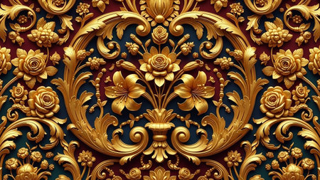 This image showcases ornate gold floral patterns against a dark background, emphasizing intricate design and luxurious aesthetic, ideal for upscale decor themes.