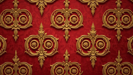 3D render of a red background with gold ornaments.