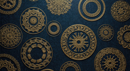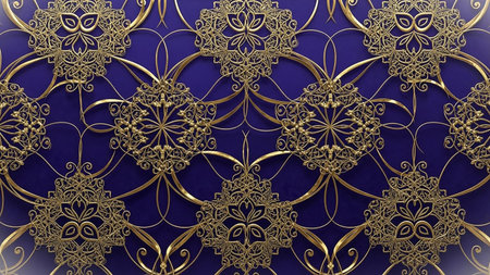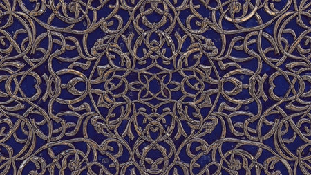 Dark blue background with gold ornaments. 3D illustration.