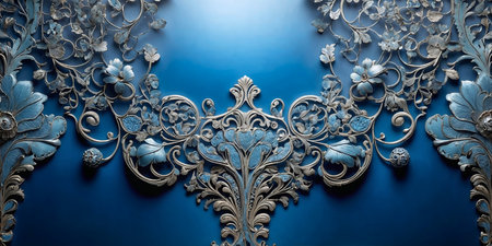 background of beautiful patina ornaments over blue wall