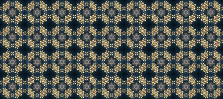Raster oriental ornament. Seamless golden pattern. Seamless pattern on blue and gray colors with golden elements.