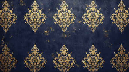 A sophisticated midnight blue background with gold damask patterns. The rich blue and ornate gold detailing exude luxury and elegance.