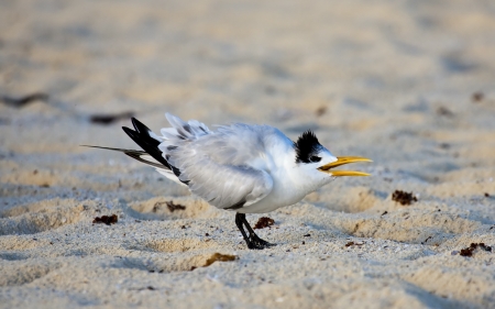 Royal tern lands on the beach