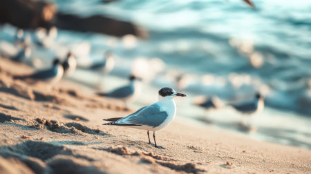 common turns on the beach, showing their natural behavior and habitat, emphasizing the simplicity and beauty of these coastal birds