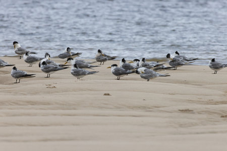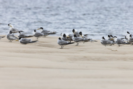 Group of Royal Tern Birds in Padre Island NS, Texas