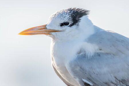 royal tern (Thalasseus maximus) stands on sand by the shore, Florida, USA