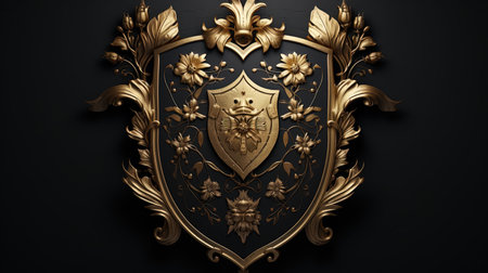 A medieval shield showcased against a dark backdrop. AI