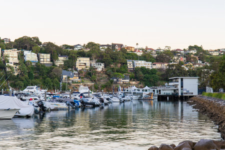 Sydney, Australia - January 17, 2021: Line of boat in Middle Harbour marina.