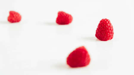 Fresh red raspberries on a white table background.