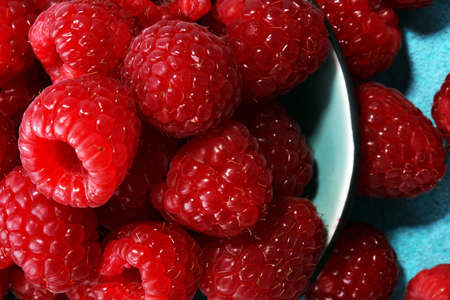 raspberries. Raspberry on blue background. Summer and healthy food concept