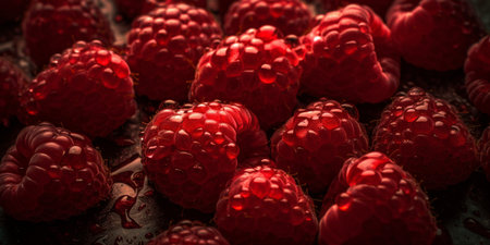 Vivid Close-up of Fresh Ripe Raspberries in Full Frame. Generative AI.