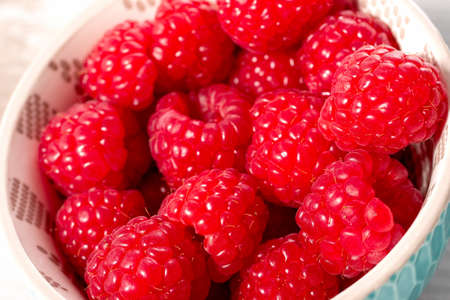 Close up image of fresh raspberries, summer concept, background image from above, food flatlay