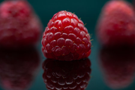 Fresh raspberries close up. Selective focus. Toned. AI generated. Macro