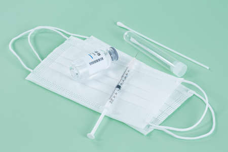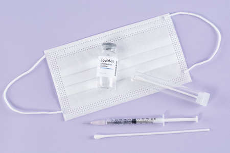 Covid-2019 virus concept. Syringe and ampoules with a vaccine against the virus.