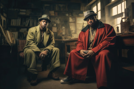Two rappers with gold jewelry in cool studio