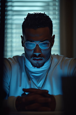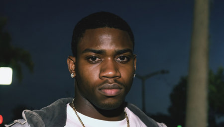 photo of angry black person man in neighborhood at night ,generative AI