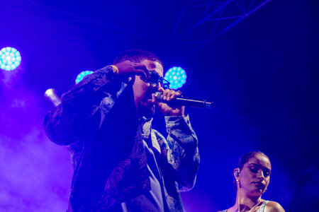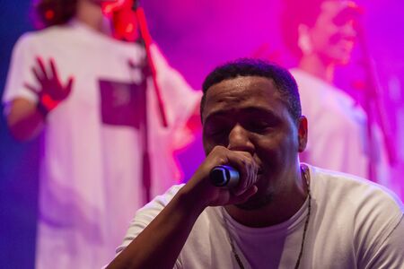 FARO, PORTUGAL: 5th SEPTEMBER, 2019 - Rap band Perigo Publico, performs on Festival F, a big festival on the city of Faro, Portugal.