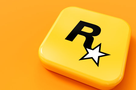 LONDON, UK - July 2023: Rockstar video game company logo. 3D Rendering