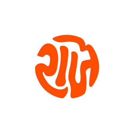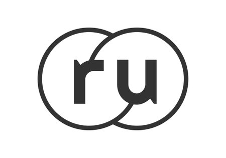 RU business company emblem with outline rounds and letters r u. Logo template of two merged circles for brand identity, logotype. Vector Infinity symbol and technology sign.