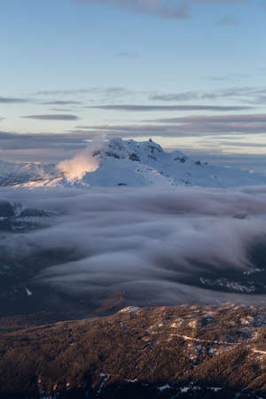 Aerial view of a beautiful Canadian Landscape during a winter sunset. Taken north of Vancouver, British Columbia, Canada.