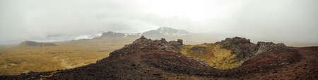 Panoramic view of volcanic crater landscape at Snaefellsnes National Park, cloudy weather