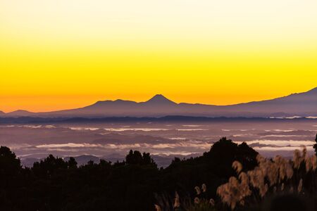 View of Mount Taranaki from Mount Ruapehu at dusk