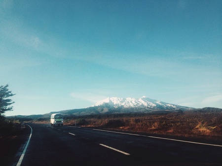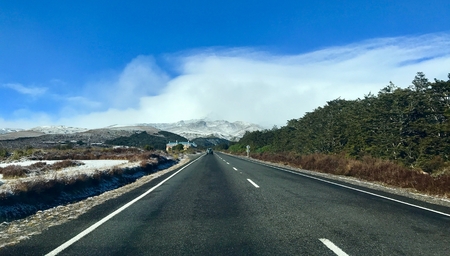 A mountain highway leading towards Mt Ruapehu in Tongariro National Park
