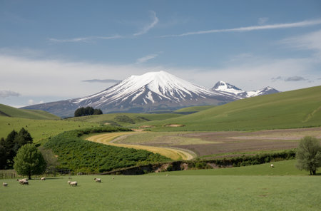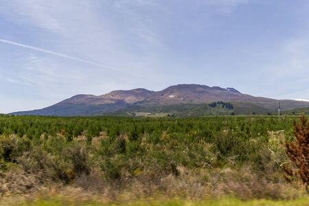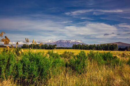 Sunny idyllic scenery around Mount Ruapehu at the North Island of New Zealand