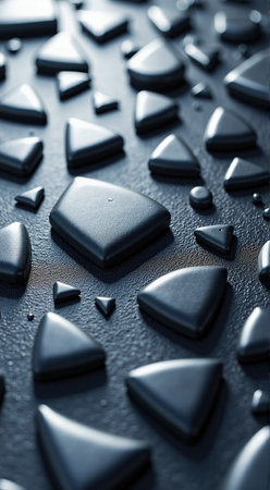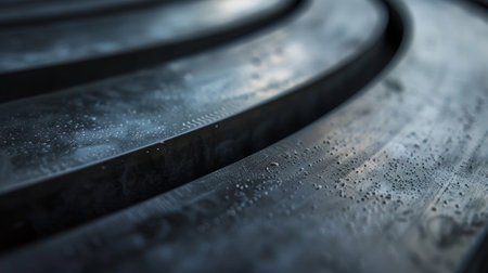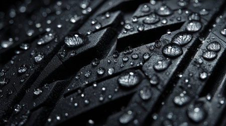 Ultra-detailed macro photograph showcasing tire grooves filled with water beads. Captured with precise studio lighting for enhanced texture and product visualization.