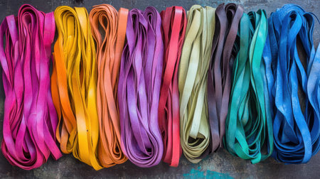 A vibrant collection of flat elastic bands in a spectrum of colors, perfect for arts, crafts, and creative projects. Ideal for adding a pop of color.