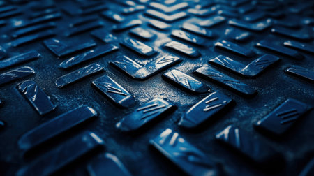 This image captures a detailed close-up of a textured metal surface featuring intricate patterns and blue tones, ideal for various design applications.