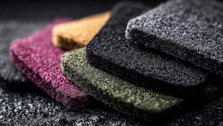 High-quality close-up of a brake pad's friction material, texture and composition. the solid background enhances focus on intricate features, essential for automotive design projects, presentations, and technical studies.