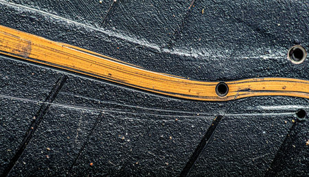 A close-up image showcasing the texture of a dark surface meeting rough ground. The visual highlights the interplay of materials, ideal for construction or nature themes.
