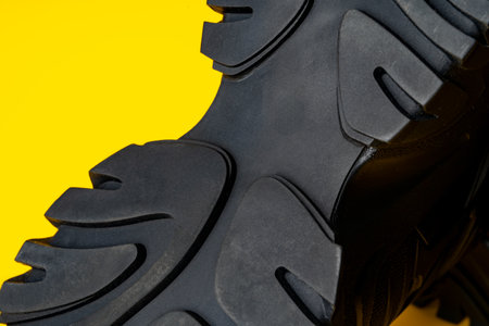 Rubber sole of military boots with tread.Studded sole of military boots top view.