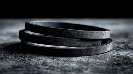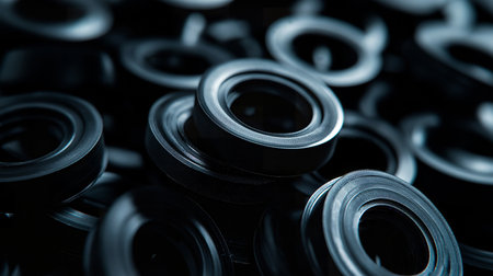 This image showcases a collection of distinct rubber items arranged on a dark textured surface, ideal for abstract design, industrial concepts, and creative projects.