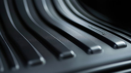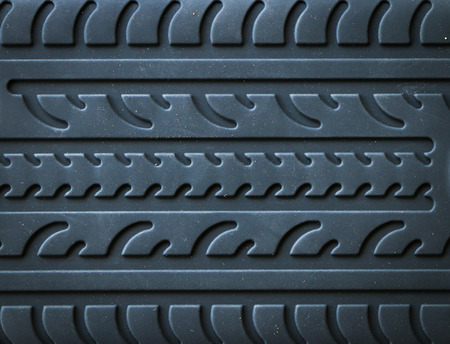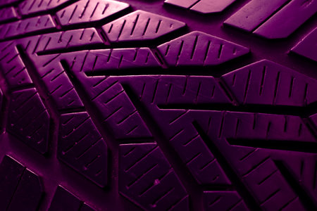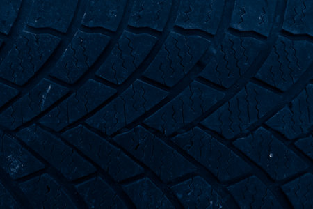 Close-up of a tire tread pattern with sharp lines and geometric shapes, emphasizing texture and design in macro perspective